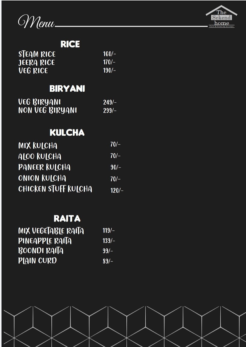 The Sekend Home Cafe & Kitchen Menu